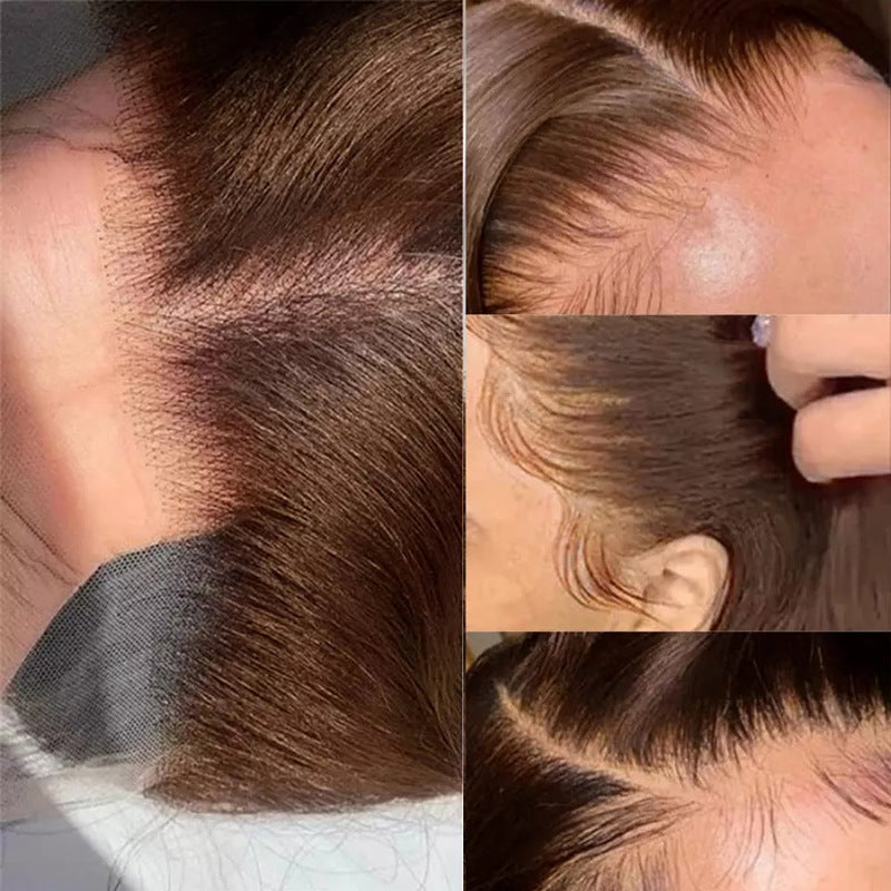 Straight Brown Lace Closure Human Hair Wigs Chocolate Color